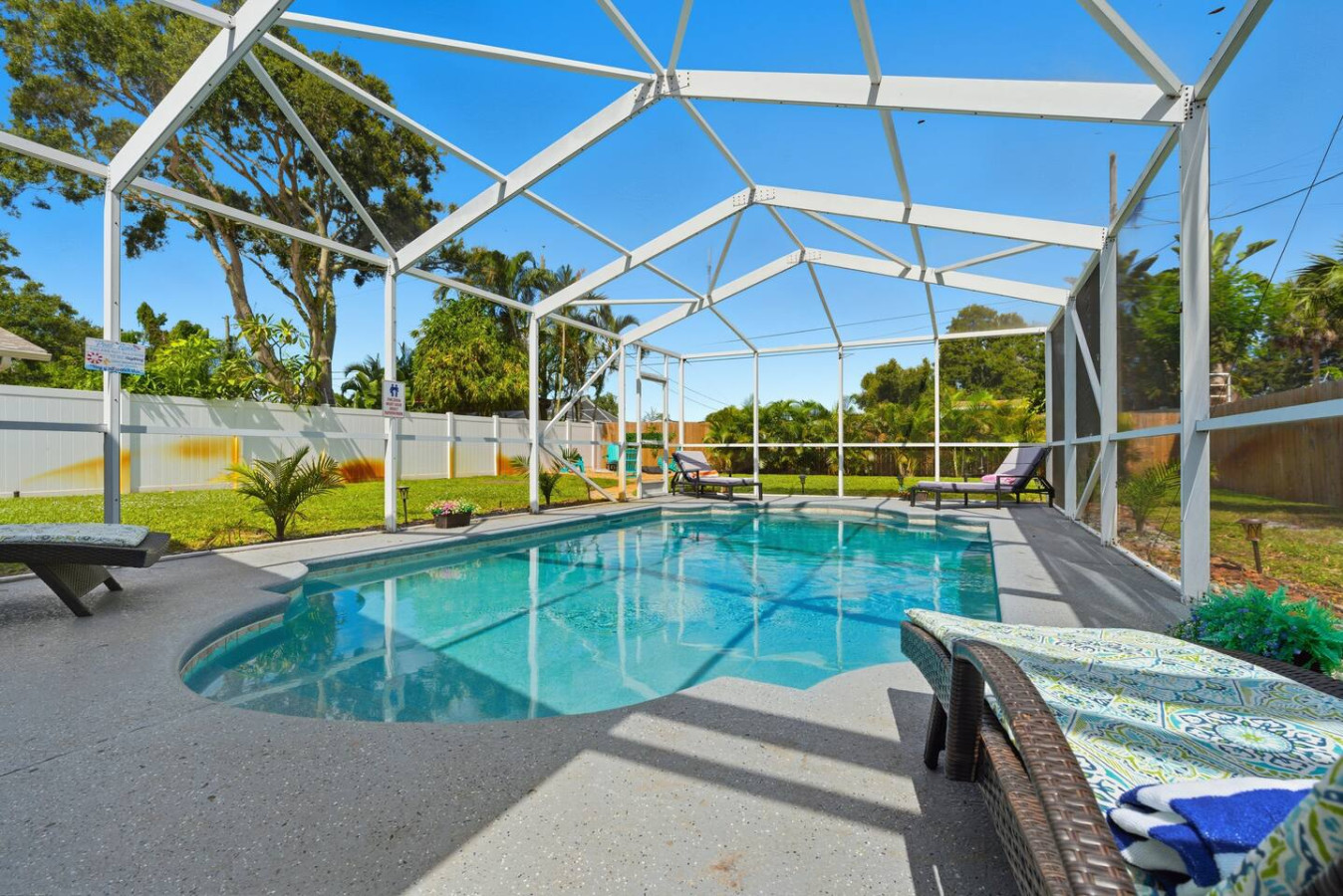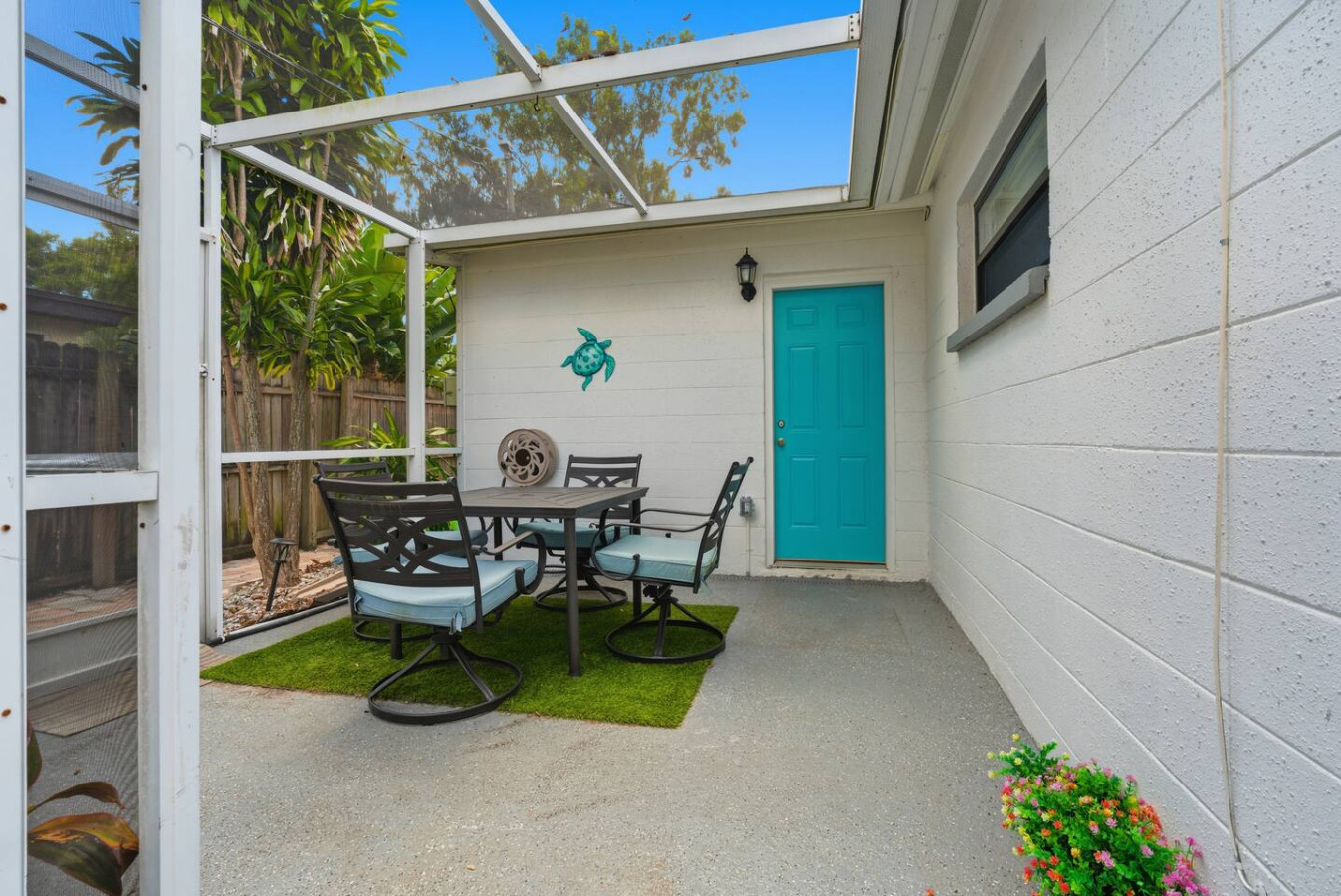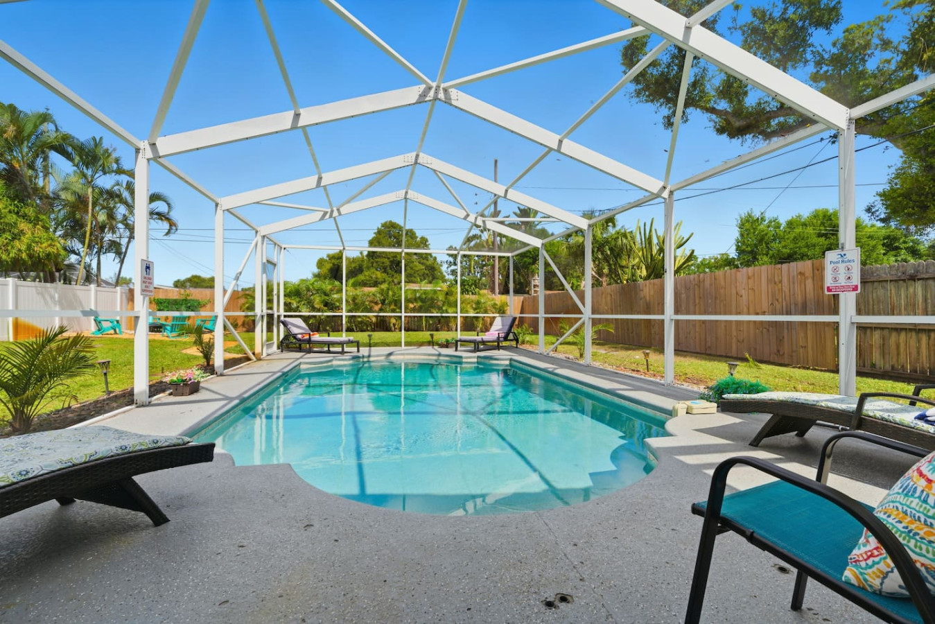 / nightWelcome to Paradise! This newly renovated, pet-friendly Oasis is perfect for family and friends. Immerse yourself in the stylish, serene beach atmosphere or unwind by the sparkling pool. St. Pete Beach, named Tripadvisor's No. 1 Beach in the U.S. in 2021, is just a few miles away. Vibrant downtown St. Petersburg is a short drive, offering exciting nightlife, delicious cocktails, great restaurants, and live music. Your dream vacation awaits! Oasis on 40th is nestled in a tranquil neighborhood of St. Petersburg, renowned for its dreamy beaches and year-round sunshine. Our home is just a short walk to a lovely neighborhood park and conveniently close to all the must-see attractions: ✴ Downtown Gulfport – 5 miles ✴ St. Pete Beach – 5 miles ✴ Tropicana Field (Tampa Bay Rays) – 7 miles ✴ The Chihuly Collection – 7 miles ✴ Downtown St. Petersburg – 8 miles ✴ The Dalí Museum – 8 miles ✴ Sunken Gardens – 6.5 miles ✴ Fort De Soto Park – 14 miles ✴ Clearwater Beach – 18 miles ✴ Raymond James Stadium (Tampa Bay Buccaneers) – 20 miles ✴ John's Pass Village & Boardwalk – 10 miles ✴ Boyd Hill Nature Preserve – 4 miles ✴ St. Petersburg Pier – 8 miles ✴ Vinoy Park – 8 miles ✴ Weedon Island Preserve – 12 miles ✴ Madeira Beach – 10 miles ✴ Sunset Beach (dog-friendly) – 6 miles ✴ Crescent Lake Dog Park – 7 miles ✴ Pass-a-Grille Beach – 6 miles ✴ Jet ski rentals and deep-sea fishing – nearby KEY AMENITIES ✴ Newly renovated home ✴ All-new furniture ✴ Keyless entry ✴ Pet-friendly ✴ Swimming pool (with lounge chairs) ✴ Pool towels ✴ Patio ✴ Outdoor lounge & dining areas ✴ BBQ grill ✴ Fully-equipped kitchen with island ✴ Coffee bar (coffee pot, gourmet K-cup coffee pods, variety of tea bags, creamer, sugar & stevia) ✴ Bath amenities ✴ Luggage stands ✴ High-speed Wi-Fi ✴ 4 Smart TVs ✴ Washer/dryer with detergent & dryer sheets ✴ Central AC & heat ✴ Parking on premises ✴ Dog bowls/mat See the amenities section with icons for a full list. LIVING ROOM Imagine a cozy, beachy living room with a fireplace as the focal point, creating a warm and inviting atmosphere. Above it, a smart TV is perfect for movie nights or watching your favorite shows. The room is filled with comfortable furniture and light, airy colors reminiscent of a beach house retreat. A stylish fireplace credenza adds to the charm and functionality. It's the ideal space to relax and unwind after a long day of sun and fun. KITCHEN & DINING ROOM Imagine a charming kitchen where turtle decor brings a unique and playful touch to the space. Adorable turtle-themed accents, including ceramic figurines, wall art, and patterned dish towels, add a whimsical feel. The overall ambiance is both inviting and fun, making this kitchen a perfect blend of functionality and personality. It is fully equipped with all kitchen amenities, ensuring you have everything you need to make your perfect breakfast, lunch, or dinner. 3 BEDROOMS Each bedroom features a smart TV, but what truly sets them apart is their unique charm: ✴ Bedroom 1 – Drift off to sleep in the tropical decor of the primary bedroom with a king bed. The palm trees outside continue inside, creating a serene oasis. This room offers complete access to the outdoor pool area and ample underbed storage. ✴ Bedroom 2 – This tropical bedroom boasts a queen bed and a beachy vibe, perfect for unwinding after a fun-filled day. It also features plenty of underbed storage and a large closet. ✴ Bedroom 3 – Let the young ones drift off to sleep in this sea-inspired decor. It feels like sleeping in an underwater paradise! This room is set up with 2 full beds and offers plenty of closet space and a dresser for all your belongings. 2 FULL BATHROOMS The primary bathroom features a luxurious dual rainforest shower head, providing a refreshing and immersive way to start or end your day. Paired with waterfall sinks, it creates a spa-like ambiance perfect for relaxation and rejuvenation. This stylish bathroom retreat is the ultimate combination for soothing and unwinding. The second full bathroom, decorated with charming seagulls, offers a tranquil escape with soft ambient lighting. Both bathrooms are equipped with all the amenities you need, including soap, shampoo, conditioner, and a hairdryer BACKYARD AND POOL OASIS Step into a backyard paradise in Florida, where a stunning pool oasis awaits. The crystal-clear water glistens under the warm sun, inviting you to sit back and relax in the privacy of lush tropical plants and palm trees. Comfortable lounge chairs, pool towels, and fun pool toys are provided, creating perfect spots for relaxation and sunbathing. Pool is ONLY heated from October to February for an extra charge, please ask us 🙂 The spacious backyard is perfect for outdoor games like corn hole and volleyball, kick ball or golf, fully fenced for privacy, offers a patio table suitable for outdoor dining, adding to the fun and excitement. As the evening sets in, gather around the cozy fire pit in the backyard. The warm glow of the flames creates an enchanting setting for roasting marshmallows and making s'mores or sharing stories. It's the ideal spot to create lasting memories with friends and family under the starlit sky. GAME ROOM Step into a lively game room, where the energy is palpable, and the fun never stops. This room creates an exciting atmosphere that beckons you to play. The centerpiece is a high-quality foosball table, surrounded by comfortable seating for spectators and players awaiting their turn. The sound of the ball clinking against the rods and the cheers of friendly competition fill the air. It's the perfect space for friends and families to gather, challenge each other, and create lasting memories. Not into foosball? Challenge your friends to a game of darts (don't worry, mom—they're magnetic). This room also offers shelves filled with a variety of games, from board