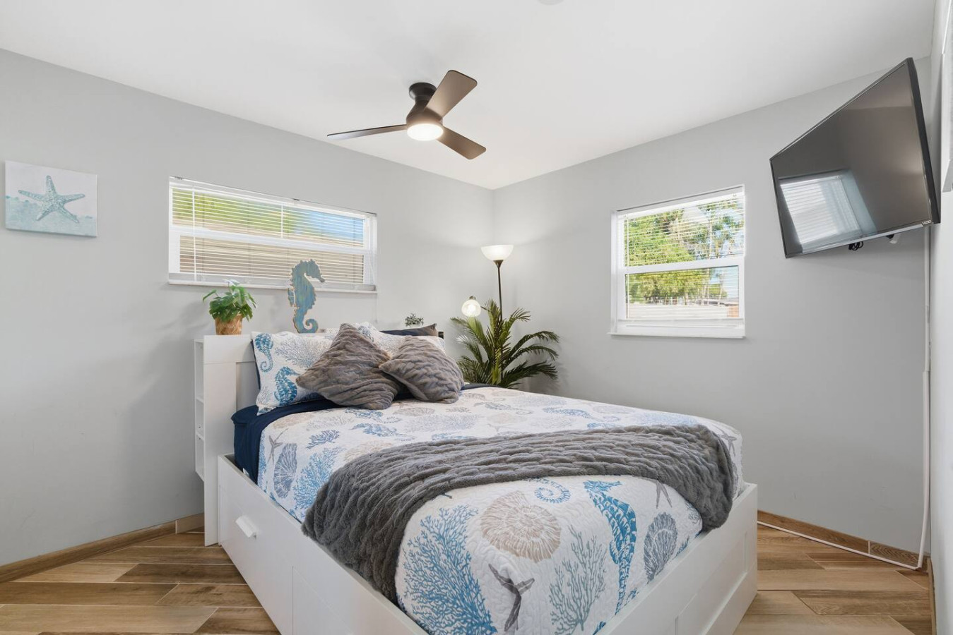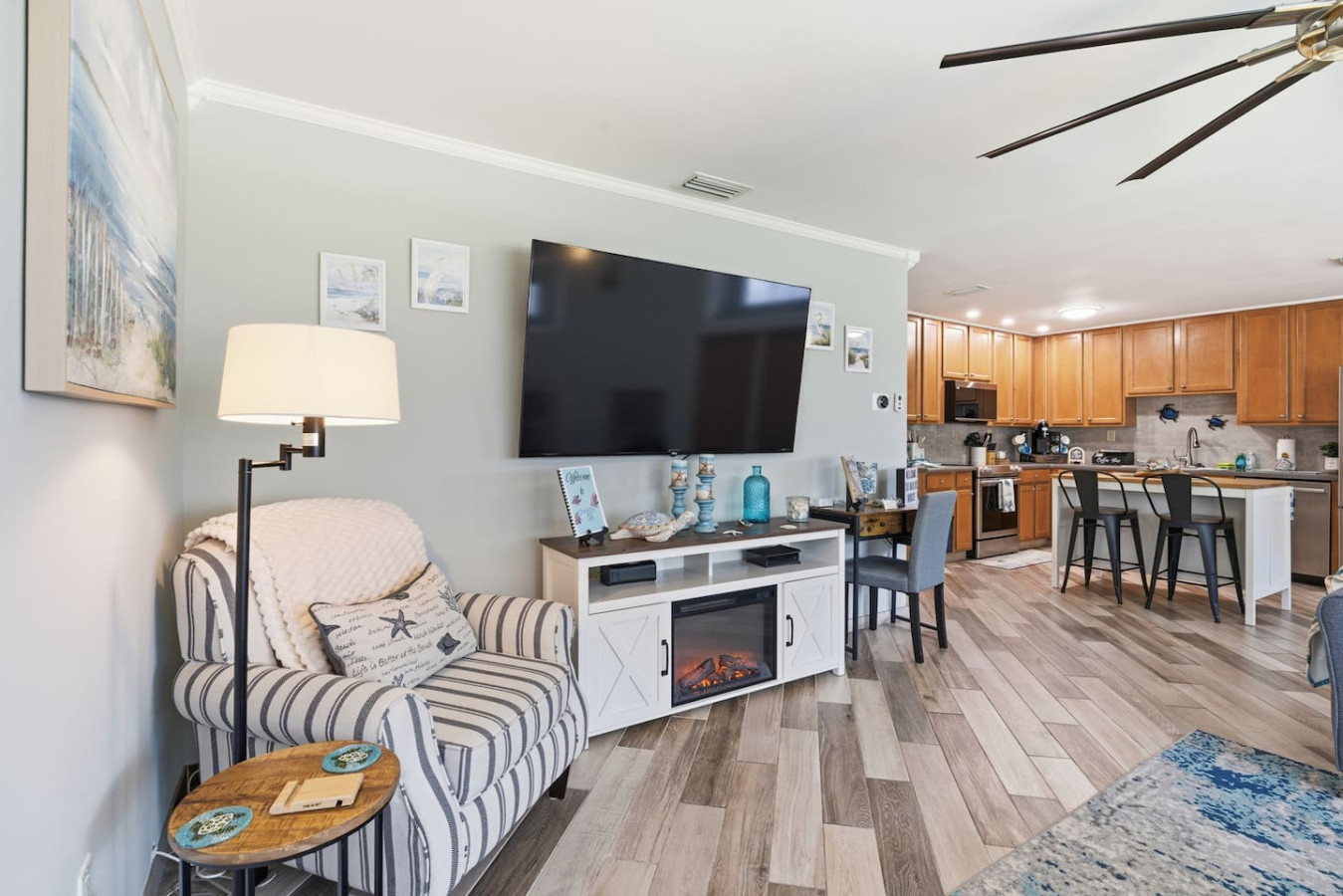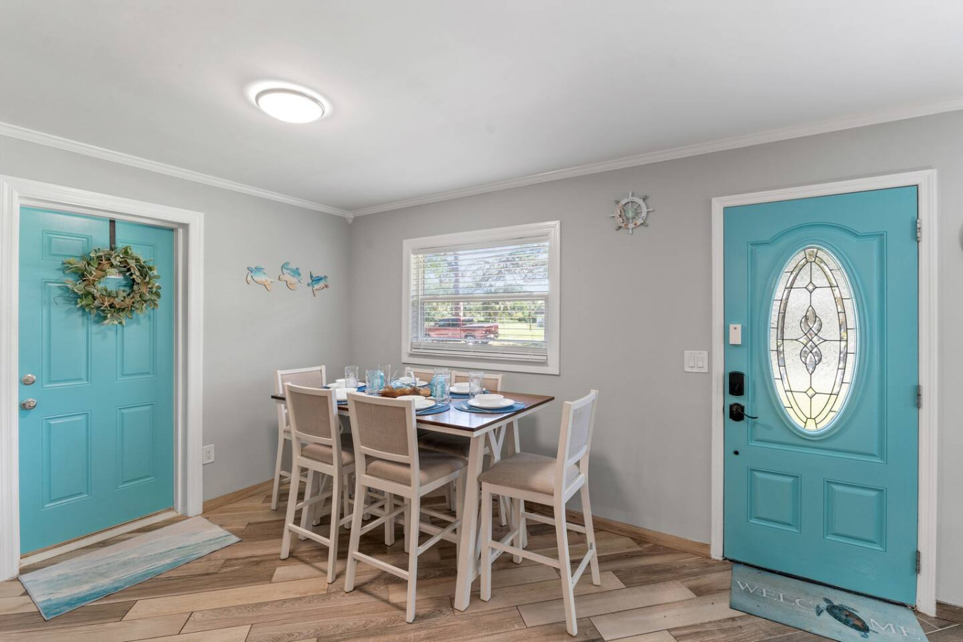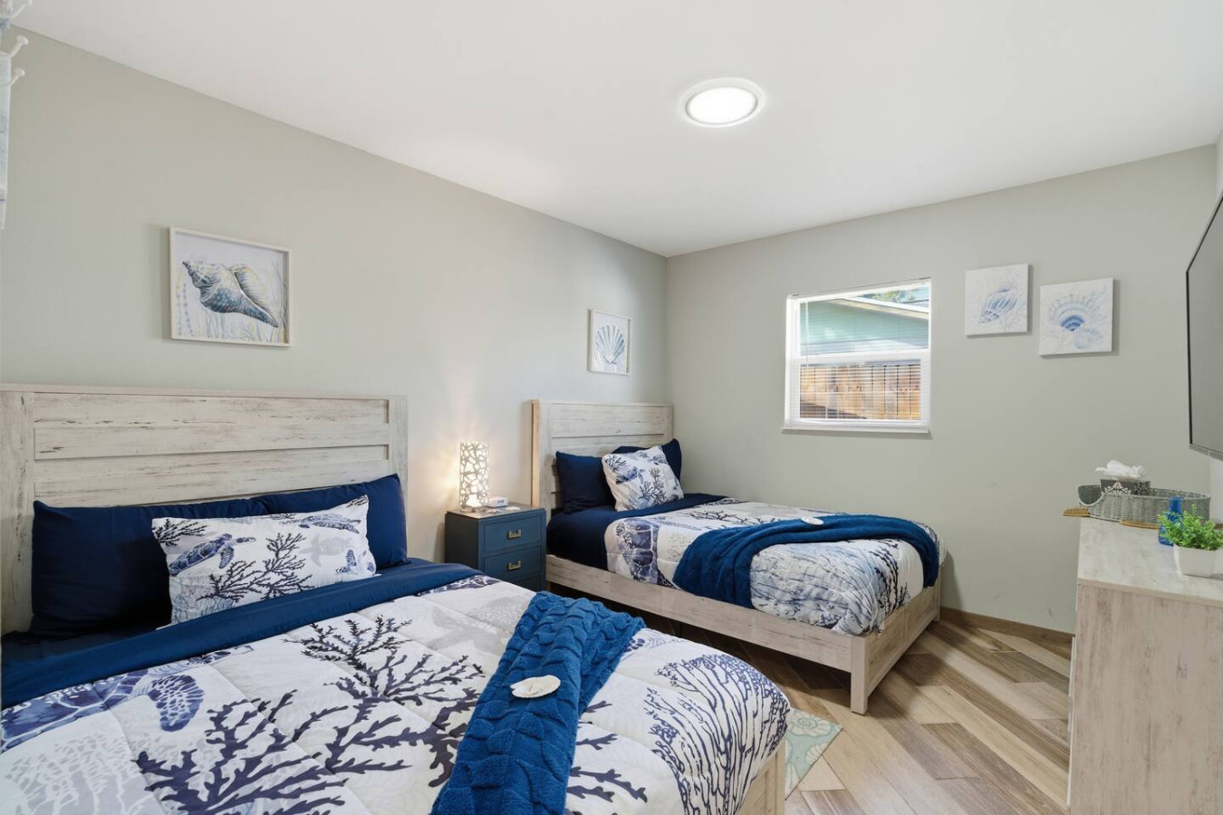 / nightWelcome to Paradise! This newly renovated, pet-friendly Oasis is perfect for family and friends. Immerse yourself in the stylish, serene beach atmosphere or unwind by the sparkling pool. St. Pete Beach, named Tripadvisor's No. 1 Beach in the U.S. in 2021, is just a few miles away. Vibrant downtown St. Petersburg is a short drive, offering exciting nightlife, delicious cocktails, great restaurants, and live music. Your dream vacation awaits! Oasis on 40th is nestled in a tranquil neighborhood of St. Petersburg, renowned for its dreamy beaches and year-round sunshine. Our home is just a short walk to a lovely neighborhood park and conveniently close to all the must-see attractions: ✴ Downtown Gulfport – 5 miles ✴ St. Pete Beach – 5 miles ✴ Tropicana Field (Tampa Bay Rays) – 7 miles ✴ The Chihuly Collection – 7 miles ✴ Downtown St. Petersburg – 8 miles ✴ The Dalí Museum – 8 miles ✴ Sunken Gardens – 6.5 miles ✴ Fort De Soto Park – 14 miles ✴ Clearwater Beach – 18 miles ✴ Raymond James Stadium (Tampa Bay Buccaneers) – 20 miles ✴ John's Pass Village & Boardwalk – 10 miles ✴ Boyd Hill Nature Preserve – 4 miles ✴ St. Petersburg Pier – 8 miles ✴ Vinoy Park – 8 miles ✴ Weedon Island Preserve – 12 miles ✴ Madeira Beach – 10 miles ✴ Sunset Beach (dog-friendly) – 6 miles ✴ Crescent Lake Dog Park – 7 miles ✴ Pass-a-Grille Beach – 6 miles ✴ Jet ski rentals and deep-sea fishing – nearby KEY AMENITIES ✴ Newly renovated home ✴ All-new furniture ✴ Keyless entry ✴ Pet-friendly ✴ Swimming pool (with lounge chairs) ✴ Pool towels ✴ Patio ✴ Outdoor lounge & dining areas ✴ BBQ grill ✴ Fully-equipped kitchen with island ✴ Coffee bar (coffee pot, gourmet K-cup coffee pods, variety of tea bags, creamer, sugar & stevia) ✴ Bath amenities ✴ Luggage stands ✴ High-speed Wi-Fi ✴ 4 Smart TVs ✴ Washer/dryer with detergent & dryer sheets ✴ Central AC & heat ✴ Parking on premises ✴ Dog bowls/mat See the amenities section with icons for a full list. LIVING ROOM Imagine a cozy, beachy living room with a fireplace as the focal point, creating a warm and inviting atmosphere. Above it, a smart TV is perfect for movie nights or watching your favorite shows. The room is filled with comfortable furniture and light, airy colors reminiscent of a beach house retreat. A stylish fireplace credenza adds to the charm and functionality. It's the ideal space to relax and unwind after a long day of sun and fun. KITCHEN & DINING ROOM Imagine a charming kitchen where turtle decor brings a unique and playful touch to the space. Adorable turtle-themed accents, including ceramic figurines, wall art, and patterned dish towels, add a whimsical feel. The overall ambiance is both inviting and fun, making this kitchen a perfect blend of functionality and personality. It is fully equipped with all kitchen amenities, ensuring you have everything you need to make your perfect breakfast, lunch, or dinner. 3 BEDROOMS Each bedroom features a smart TV, but what truly sets them apart is their unique charm: ✴ Bedroom 1 – Drift off to sleep in the tropical decor of the primary bedroom with a king bed. The palm trees outside continue inside, creating a serene oasis. This room offers complete access to the outdoor pool area and ample underbed storage. ✴ Bedroom 2 – This tropical bedroom boasts a queen bed and a beachy vibe, perfect for unwinding after a fun-filled day. It also features plenty of underbed storage and a large closet. ✴ Bedroom 3 – Let the young ones drift off to sleep in this sea-inspired decor. It feels like sleeping in an underwater paradise! This room is set up with 2 full beds and offers plenty of closet space and a dresser for all your belongings. 2 FULL BATHROOMS The primary bathroom features a luxurious dual rainforest shower head, providing a refreshing and immersive way to start or end your day. Paired with waterfall sinks, it creates a spa-like ambiance perfect for relaxation and rejuvenation. This stylish bathroom retreat is the ultimate combination for soothing and unwinding. The second full bathroom, decorated with charming seagulls, offers a tranquil escape with soft ambient lighting. Both bathrooms are equipped with all the amenities you need, including soap, shampoo, conditioner, and a hairdryer BACKYARD AND POOL OASIS Step into a backyard paradise in Florida, where a stunning pool oasis awaits. The crystal-clear water glistens under the warm sun, inviting you to sit back and relax in the privacy of lush tropical plants and palm trees. Comfortable lounge chairs, pool towels, and fun pool toys are provided, creating perfect spots for relaxation and sunbathing. Pool is ONLY heated from October to February for an extra charge, please ask us 🙂 The spacious backyard is perfect for outdoor games like corn hole and volleyball, kick ball or golf, fully fenced for privacy, offers a patio table suitable for outdoor dining, adding to the fun and excitement. As the evening sets in, gather around the cozy fire pit in the backyard. The warm glow of the flames creates an enchanting setting for roasting marshmallows and making s'mores or sharing stories. It's the ideal spot to create lasting memories with friends and family under the starlit sky. GAME ROOM Step into a lively game room, where the energy is palpable, and the fun never stops. This room creates an exciting atmosphere that beckons you to play. The centerpiece is a high-quality foosball table, surrounded by comfortable seating for spectators and players awaiting their turn. The sound of the ball clinking against the rods and the cheers of friendly competition fill the air. It's the perfect space for friends and families to gather, challenge each other, and create lasting memories. Not into foosball? Challenge your friends to a game of darts (don't worry, mom—they're magnetic). This room also offers shelves filled with a variety of games, from board