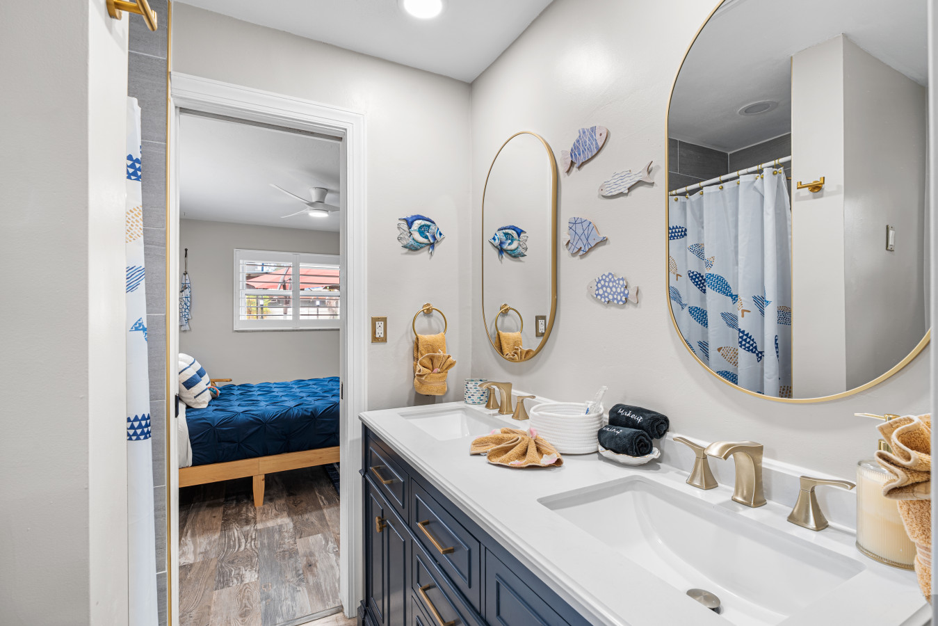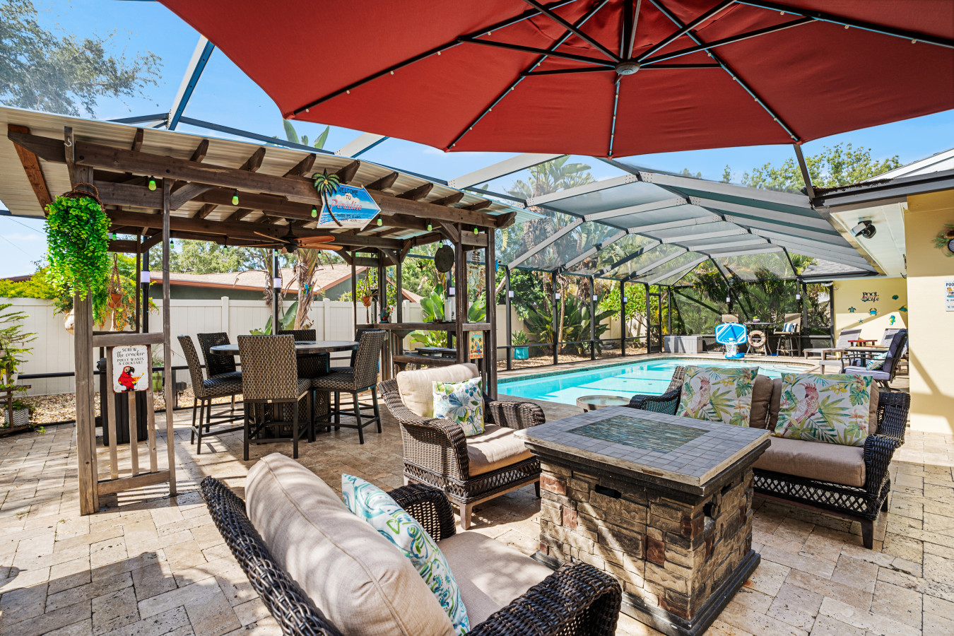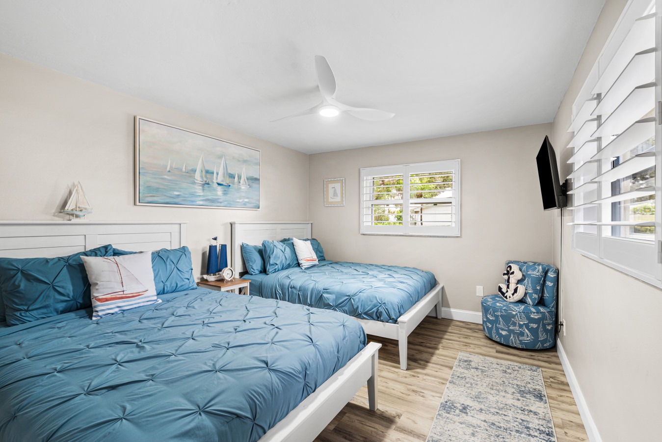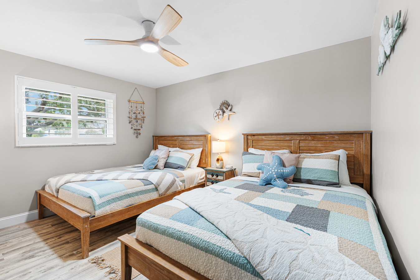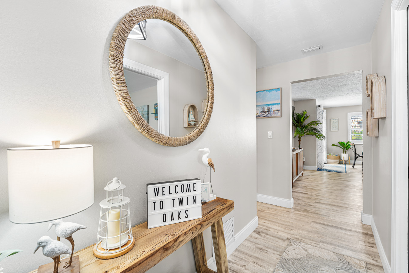 Twin Oaks Coastal Luxury offers an exquisite retreat where guests can indulge in the unparalleled beauty surrounded by stately oak trees and is only 2 miles from Indian Rocks Beach. The interior features chic coastal decor with airy spaces with plush furnishings of coastal decor with nautical accents. The backyard boasts a Caribbean tiki bar that offers an indulgent escape that combines elegance of lounging around the pool with the relaxed tropical charm of the Caribbean. Twin Oaks Coastal Luxury by the beach is only 5 minutes from Indian Rocks Beach. It offers an exquisite retreat where guests can indulge in the unparalleled beauty surrounded by stately oak trees. This stunning 4 bedroom, 3 bath coastal luxury Airbnb offers the perfect blend of comfort and style making it an ideal retreat for families or groups. The interior features chic coastal decor with an airy spaces with plush furnishings of coastal decor with nautical accents that evoke a sense of tranquility and refinement. The backyard boasts a Caribbean tiki bar that offers an indulgent escape that combines elegance of lounging around the pool with the relaxed tropical charm of the Caribbean. At the tiki bar guests can unwind in the shade surrounded by plush palms and vibrant island decor. This fusion of luxury and laid-back island vibes creates the perfect haven for those seeking both comfort and a touch of exotic adventure. Where you will Sleep: Palm Paradise retreat offers a serene and inviting space that is the perfect sanctuary for relaxation and rejuvenation. The bedroom has a king bed with luxurious bedding and ensuite bath. Sailor's Cabin is a cozy retreat perfect for relaxing and dreaming of adventures on the open seas. This bedroom combines elements of the sea with a cozy inviting atmosphere. Two queen beds are decorated in soft blues with luxurious bedding and plush pillows. Relax in Angler’s Alcove - a space that reflects a love for fishing and the outdoors. A perfect retreat for any fishing enthusiast. This room provides sleeping arrangements for three. A queen bed with plush pillows and bedding complete this room. This room also has convertable sleeper chair. Lay your head down in Castaway’s Respite where you will feel a sense of tranquility and isolation. A reminiscent of a serene beach get away. Dream of sandy shores and gentle ocean breezes as you sleep under a cloud like mattress with plush pillows and airy blankets. This room has 2 queen beds. This property has 3 full bathrooms with complimentary shampoo, conditioner & body wash. The interior features with an airy spaces with plush furnishings of luxururios coastal decor with nautical accents that evoke a sense of tranquility and refinement. The property boasts a spacious, fully equipped kitchen complete with modern appliances and ample counter space for a perfect preparing gourmet meals. Adjacent to the kitchen is a charming area ideal for casual breakfast or quick coffee. For more formal meals the separate dining room provides an elegant setting with a large table and stylish decor. The lounge area offers a cozy space to relax with comfortable seating and a serene atmosphere while living the room provides larger space for gatherings featuring plush sofas, flat screen TV and large windows that flood the room with natural light. Step into our Caribbean oasis where vibrant hues of turquoise and emerald dance across the pool. Palm trees sway gently in the warm breeze. The backyard boasts a Caribbean tiki bar that offers an indulgent escape, combining the elegance of lounging by the pool with the relaxed tropical charm of the Caribbean. At the tiki bar, guests can unwind under the shade of the roof, surrounded by plush palms and vibrant island decor. This fusion of luxury and laid-back island vibes creates the perfect haven for those seeking both comfort and a touch of exotic adventure. We do not allow smoking in our home: This includes the use of tobacco, cannabis, e-cigarettes, etc. We are pet friendly, but please keep the fur-babies off of the furniture and out of pool. There is parking for 4 cars with access to the garage. You will enter the home through the keypad deadbolt on the front door. You'll be given a unique 4-digit code that is programmed to work during your stay.