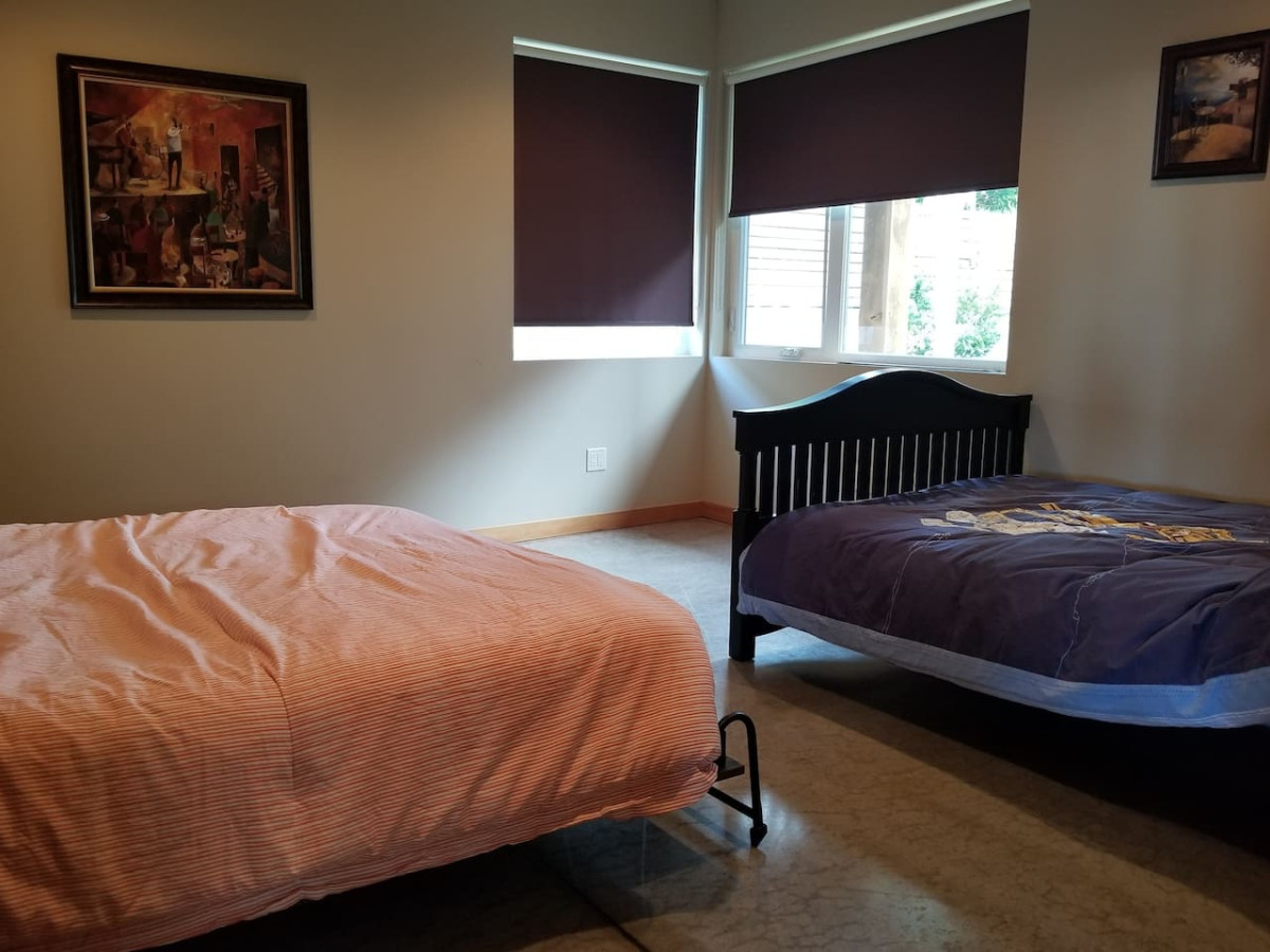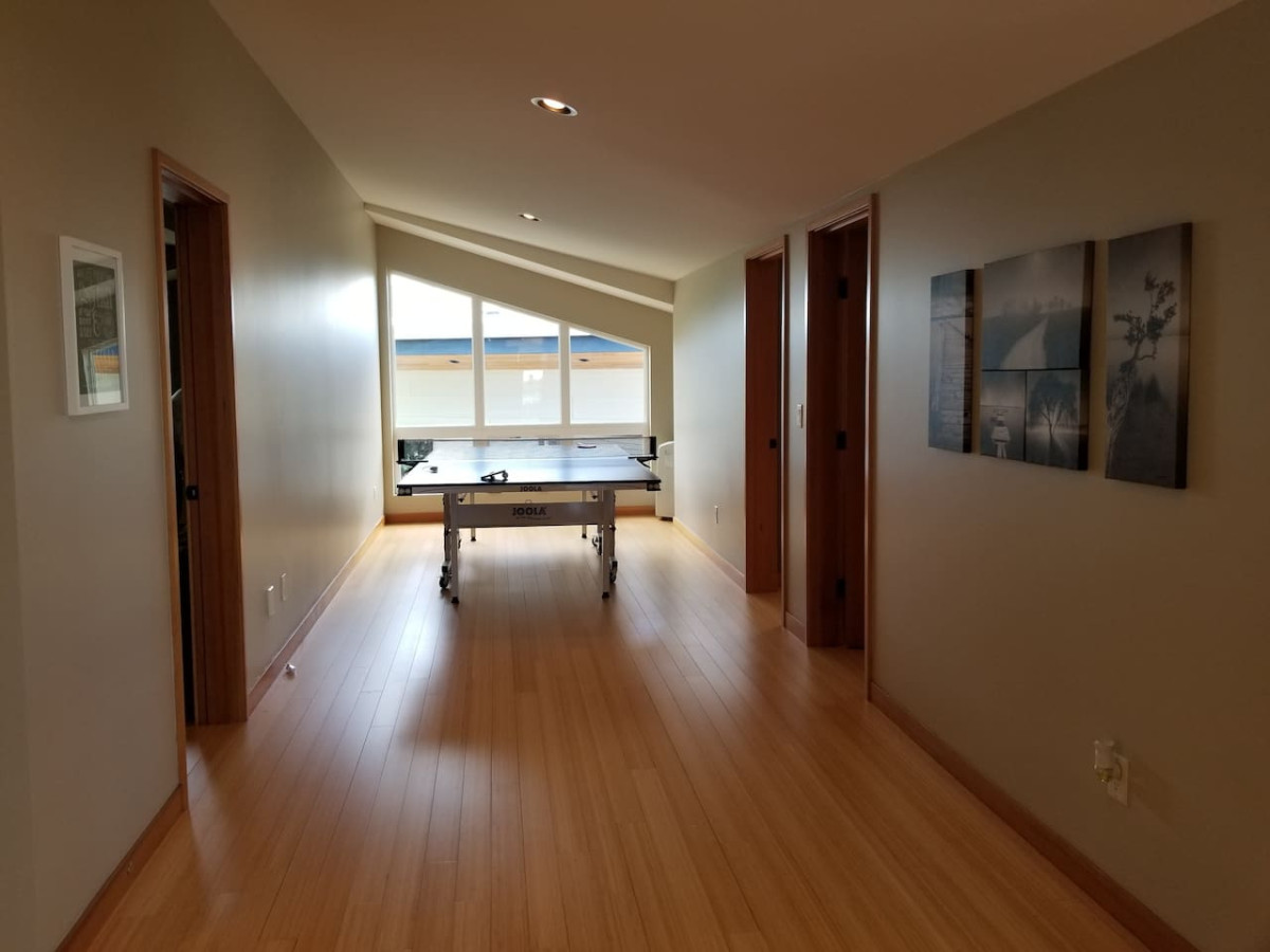 July 2024 5.00The house was very spacious with plenty of rooms for our family reunion. It was within walking distance of a nearby park, perfect for watching the sunset. The house provided detergent and fabric softener, so we didn’t have to buy additional household items. The kitchen was fully stocked with plenty of pots, pans, herbs, and spices for our family dinners. It provided electronic, ping pong table and board games for the kids. The neighbors had a cute poodle that visited us when we had the door open for air. It scared a few of the kids and left waste on the lawn, which we had to clean up. The gas BBQ grill was not working, but there was a charcoal grill available. We provided our own charcoal and lighter fluid. There was a large hole under the hot tub that looked like rabbits had taken over. The house does not have central AC, but once you open the windows and close the shades, a nice breeze comes through. The one AC was in the main bathroom and a small portable AC upstairs with a fan